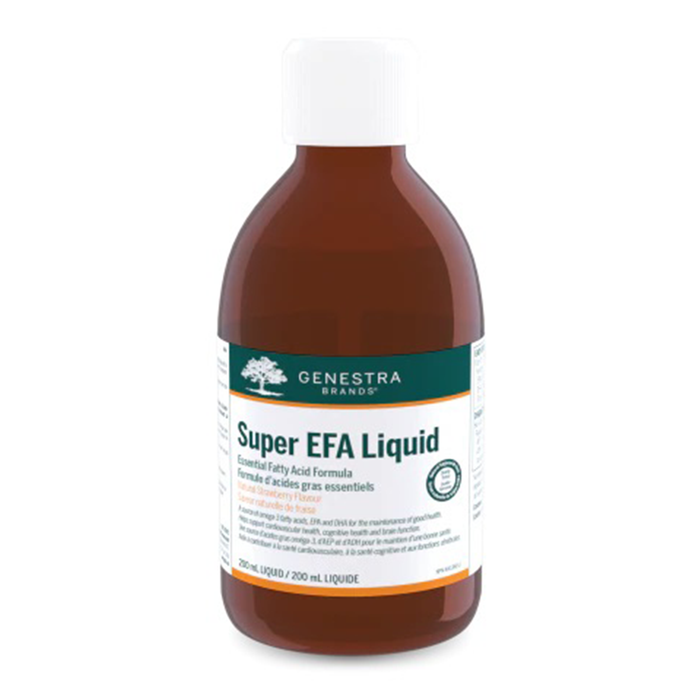 - Super EFA Liquid Strawberry Dairy Free Gluten Free Delicious natural strawberry flavour Assists Aid cognitive health and brain function Assists maintain cardiovascular health and reduce serum triglycerides in adults Assists Aid the development of the brain, eyes and nerves in children up to 12 years of age Uses proprietary NEO-3 process to concentrate natural EPA/DHA triglyceride forms, for improved absorption Super EFA Liquid provides 1675 mg of EPA and DHA per teaspoon serving, and has an EPA:DHA ratio of 1