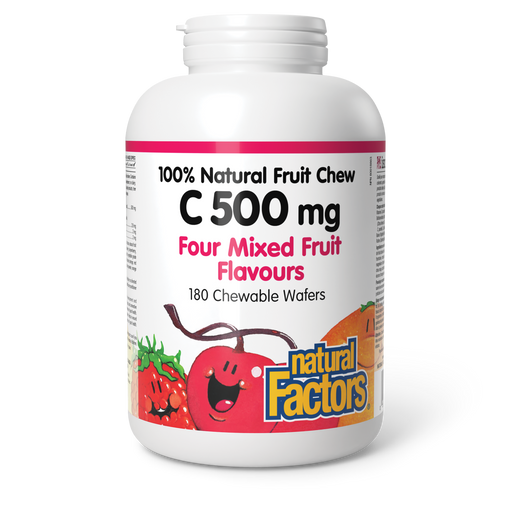 View full detailsNatural Factors C 500 mg 100% Natural Fruit Chew 500 mg 180 Chewable Wafers Four Mixed Fruit Flavours