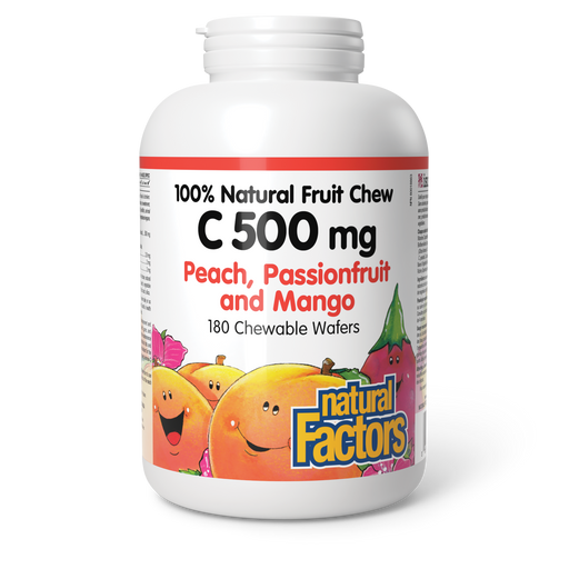 View full detailsNatural Factors C 500 mg 100% Natural Fruit Chew 500 mg 180 Chewable Wafers Peach, Passionfruit and Mango