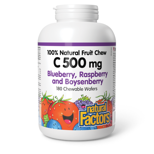 View full detailsNatural Factors C 500 mg 100% Natural Fruit Chew 500 mg 180 Chewable Wafers Blueberry, Raspberry and Boysenberry