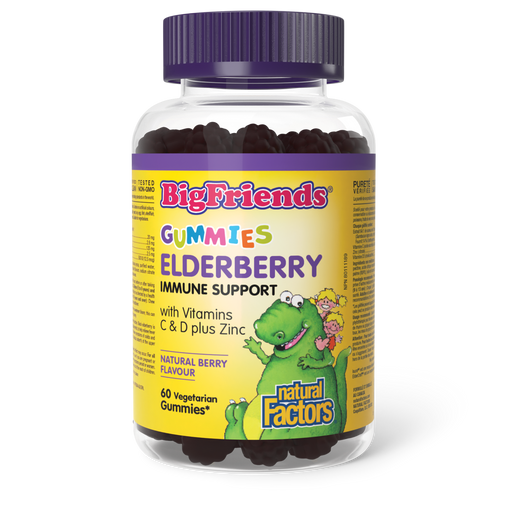 Natural Factors Elderberry Gummies with Vitamins C & D plus Zinc 20 mg 60 Vegetarian Gummies