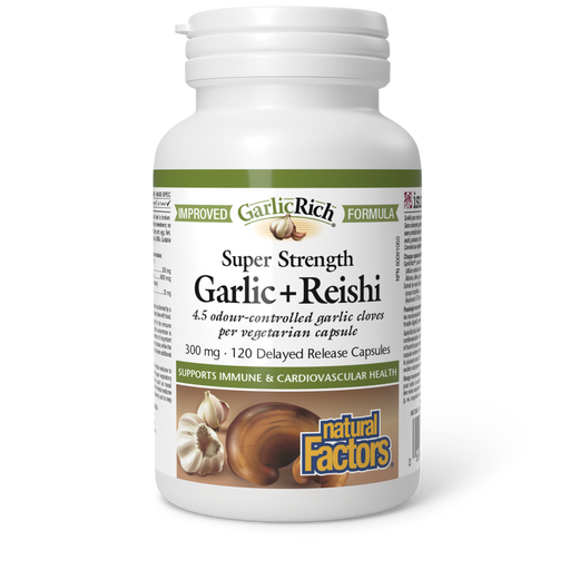 View full detailsNatural Factors Garlic+Reishi Super Strength 300 mg 120 Delayed Release Vegetarian Capsules