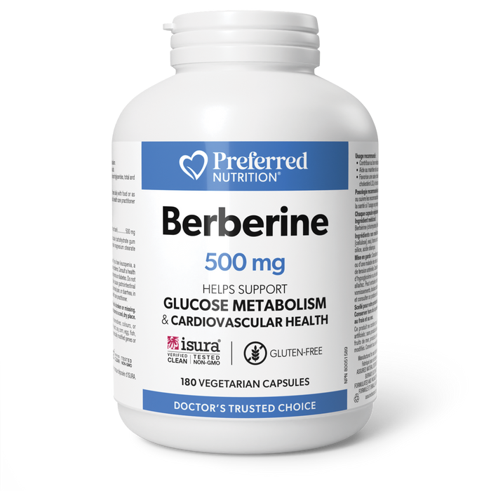 Preferred Nutrition Berberine is a concentrated barberry root extract used to support healthy glucose metabolism and cardiovascular health in adults. Berberine is an alkaloid that occurs naturally in certain medicinal plants. It is a fantastic option for people who want to support blood sugar balance and healthy cholesterol levels with the convenience of just two vegetarian capsules per day.