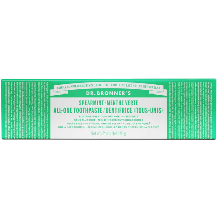 - Bronner’s All-One Toothpaste now available in Spearmint! Made with organic spearmint oil to leave your mouth with a long-lasting mellow-minty-fresh-clean feeling