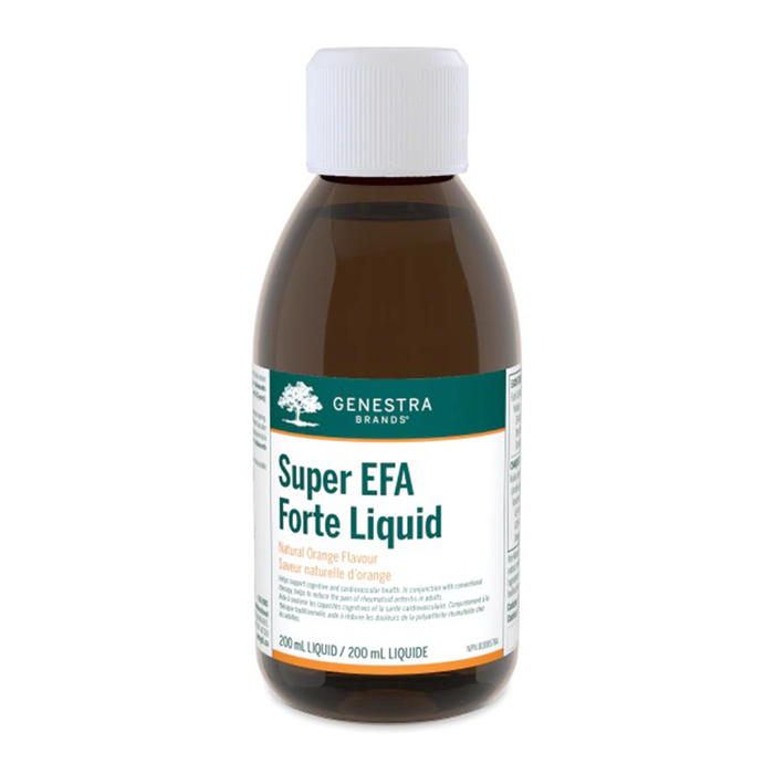 - Super EFA Forte Liquid Orange Non GMO Dairy Free Gluten Free Delicious natural orange flavour Features an anti-spill pouring spout Ideal for those who have difficulty swallowing capsules Helps Aid cognitive and cardiovascular health, while reducing serum triglycerides Double-potency formula offering 1,500 mg of EPA and 1,000 mg of DHA per teaspoon In conjunction with conventional therapy, Assists to reduce the pain of Theumatoid arthritis (RA) in adults Super EFA Forte Liquid is a high-potency fish oil formula offering EPA and DHA in a bioavailable triglyceride form