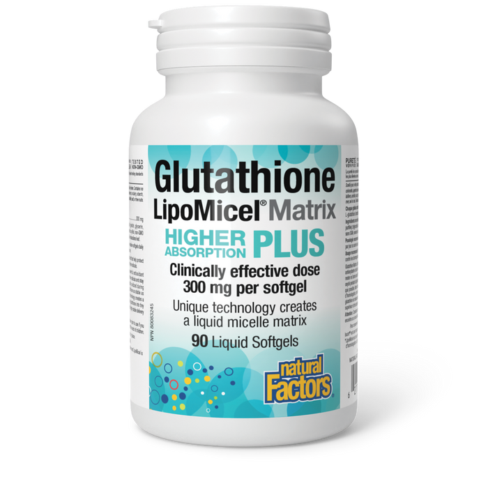 Natural Factors Glutathione LipoMicel Matrix delivers an enhanced source of the antioxidant glutathione to protect your body from the oxidative damage caused by free radicals. Glutathione is used by the body to defend against free radical damage and is found in high amounts in the liver. Our unique patent-pending technology creates a liquid micelle matrix that disperses the glutathione into tiny micro-droplets, resulting in a highly stable delivery system for higher absorption than standard forms.