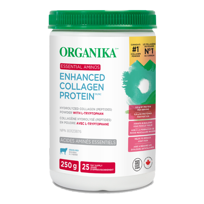 - Essential Aminos Enhanced Collagen Protein Soy Free Egg Free Dairy Free Non GMO Gluten Free Caffeine Free Keto Friendly No Preservatives No Artificial Sweeteners No Artificial Colours Or Flavours From Grassfed Pasture-Raised Cattle Radiant skin, strong hair & nails, healthy bones, joints & gut + source of protein Essential Aminos Enhanced Collagen Protein is the same collagen formula you love with the addition of Tryptophan to complete the essential amino acid profile