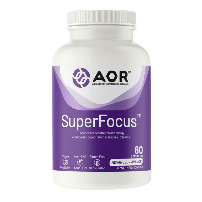 - SuperFocus 931mg Enhances Concentration And Energy AOR’s SuperFocus provides B vitamins, botanical extracts and caffeine to improve mental alertness while inducing a calm and relaxed state