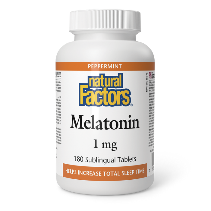 Many adults experience frequent or occasional sleep disturbance, including difficulty falling asleep, staying asleep, or waking too early. The most popular natural sleep aid is melatonin because it is effective and safe to use.Melatonin is the body’s own natural sleep hormone, produced in the brain in the pineal gland each evening when darkness falls. It is part of the “biological clock” that produces the circadian rhythm and prepares the body for sleep. But the natural rhythm of this clock can be disrupted, resulting in difficulty sleeping.Research shows that taking a melatonin supplement 30–90 minutes before bedtime temporarily resets the biological clock, reduces the time it takes to fall asleep, improves sleep quality, increases total sleep time in people with an altered sleep schedule (e.g., shift work or jet lag), and reduces daytime fatigue associated with jet lag. Unlike pharmaceutical sleeping pills, which can disrupt the critical REM stage of sleep, melatonin supports REM sleep.Safe and effective Natural Factors Melatonin is made from non-animal sources. The sublingual tablets ensure fast, consistent absorption and are available in four strengths to provide the right dose for your needs. Sleep is very important. If you have a serious sleep disorder, consult a health care practitioner.